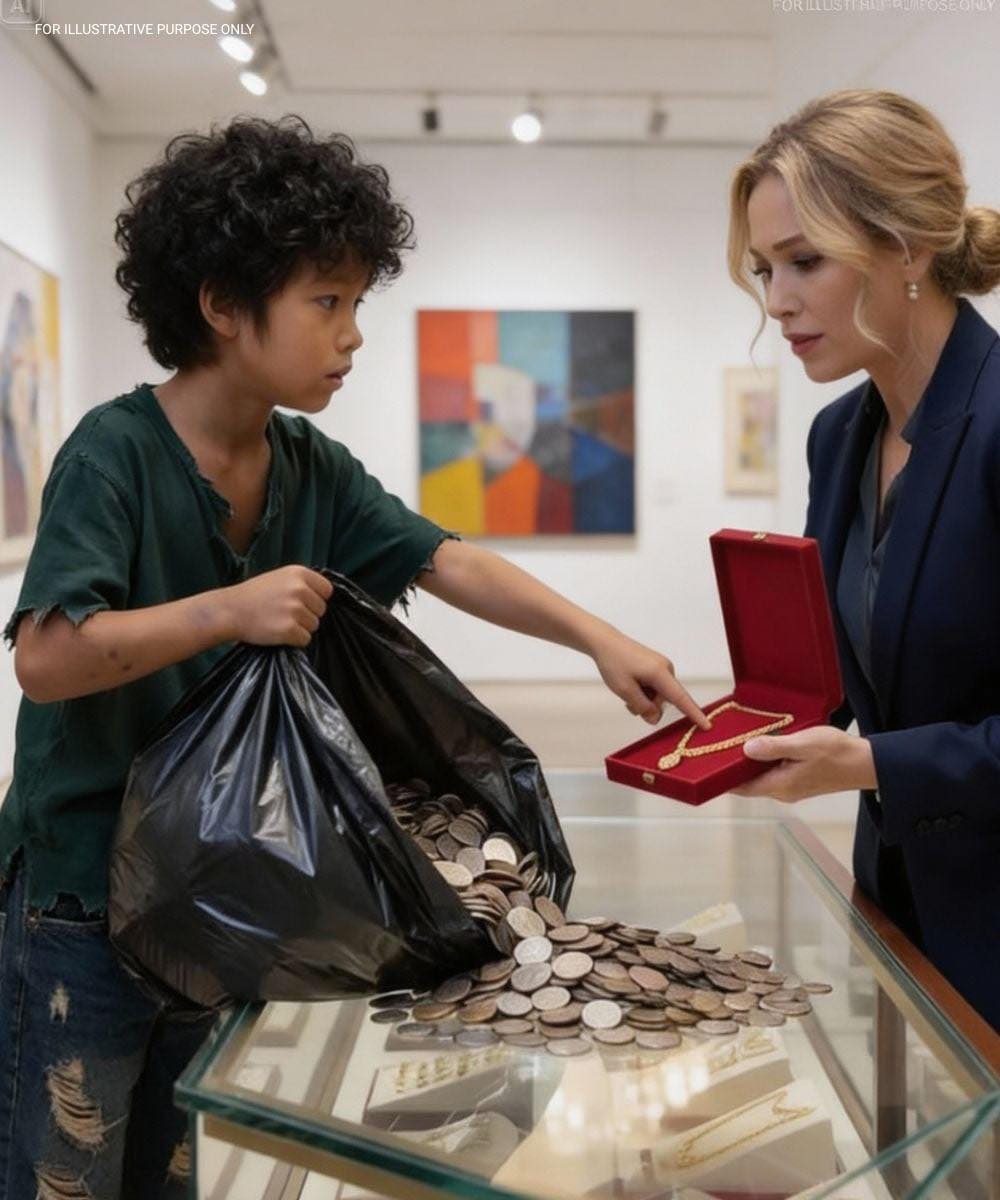 A shabby boy stepped into a luxury jewelry store and spilled countless coins onto the shining counter. A guard moved to expel him—until the manager froze, hearing the boy’s words that silenced every wealthy customer.