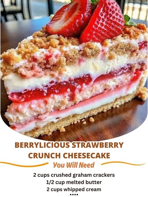 This recipe combines creamy cheesecake, sweet strawberries, and a crunchy topping for a delicious dessert. Ingredients: Graham Cracker Crust: 2 cups graham cracker crumbs 1/2 cup unsalted butter (melted) 1/4 cup granulated sugar Cheesecake Filling: 2 cups cream cheese (softened) 1 cup granulated sugar 1/2 cup sour cream 1 teaspoon vanilla extract 2 large eggs … Read more